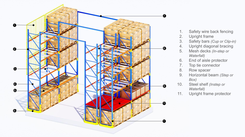 This racking system can accommodate various pallet sizes and weights, making it suitable for a diverse range of products and industries.
