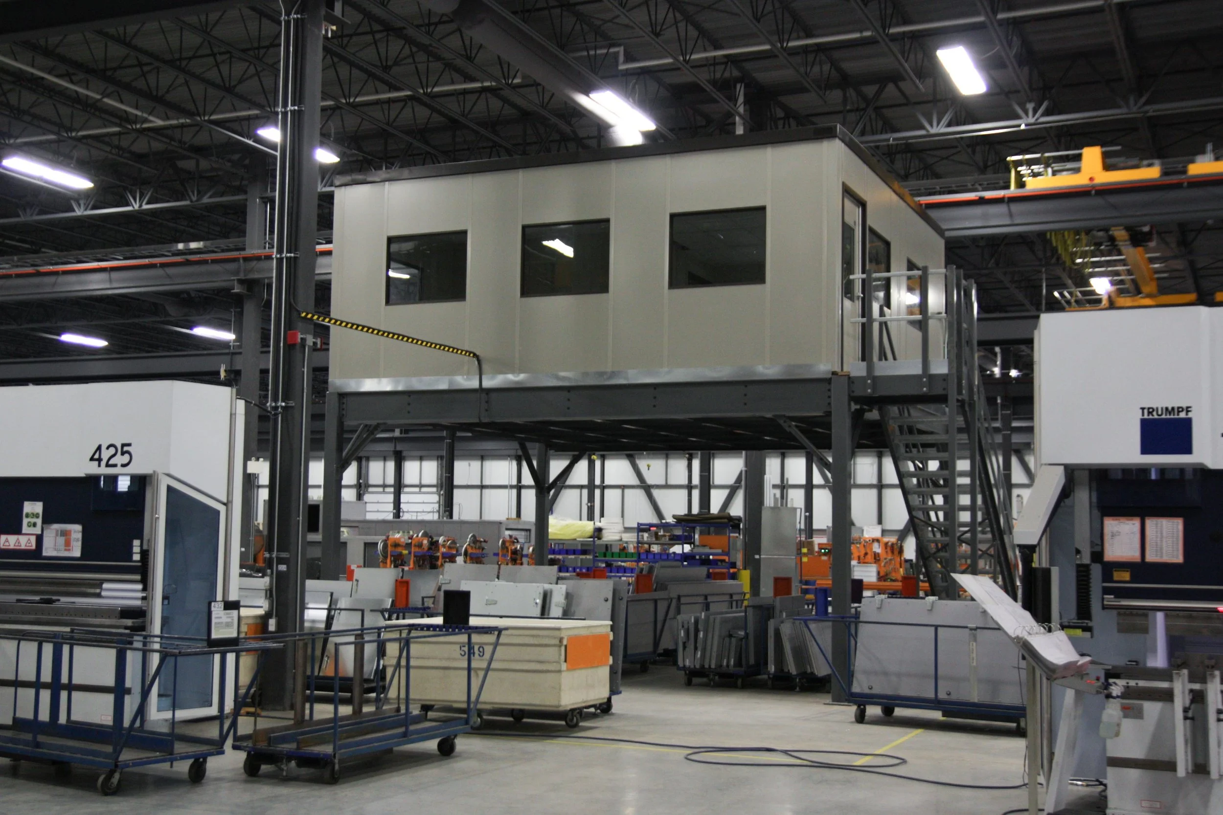 C’est pourquoi nos mezzanines autoportantes avec bureaux de qualité supérieure vous offrent le meilleur des deux mondes. Elles offrent aux superviseurs une vue imprenable sur toutes les opérations, ainsi qu’un plan d’étage spacieux et un environnement paisible pour gérer les choses importantes.